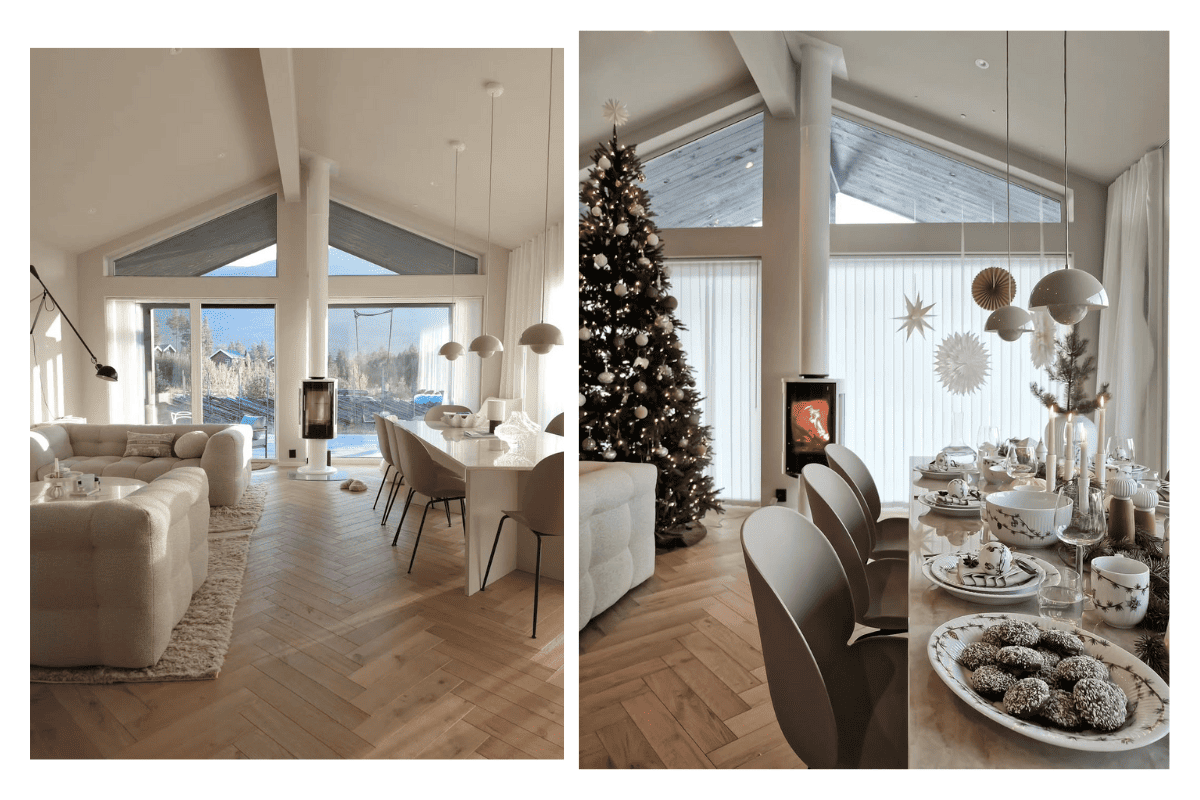 Nous avons construit notre maison il y a trois ans, avec une vision de créer un espace lumineux, ouvert, et un design entièrement scandinave. Elle est souvent confondue avec une maison classique, mais ce n’est pas une cabine traditionnelle…et peut-être que c’est ce qui me plaît le plus !
